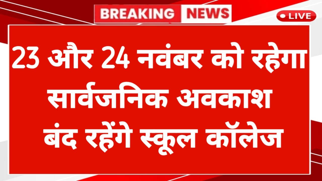 23 और 24 नवंबर को रहेगा सार्वजनिक अवकाश बंद रहेंगे स्कूल कॉलेज और दफ्तर Public Holiday Latest News
