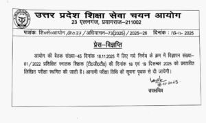 UP TGT Exam Postpond News: उत्तर प्रदेश शिक्षा सेवा चयन आयोग से संबंधित एक महत्वपूर्ण अपडेट सामने आया है आयोग ने प्रशिक्षित स्नातक शिक्षक टीजीटी चयन की लिखित परीक्षा को एक बार दोबारा से स्थगित कर दिया है यह परीक्षा 18 और 19 दिसंबर 2025 को होनी थी अब यह परीक्षाये अपने निर्धारित तिथियों को नही हो सकेंगी।